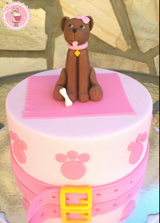 Este modelado sirve para hacer un perrito o poniéndole un lacito o una florecilla en la cabeza, una perrita como la que yo hice para decorar ésta tarta.
